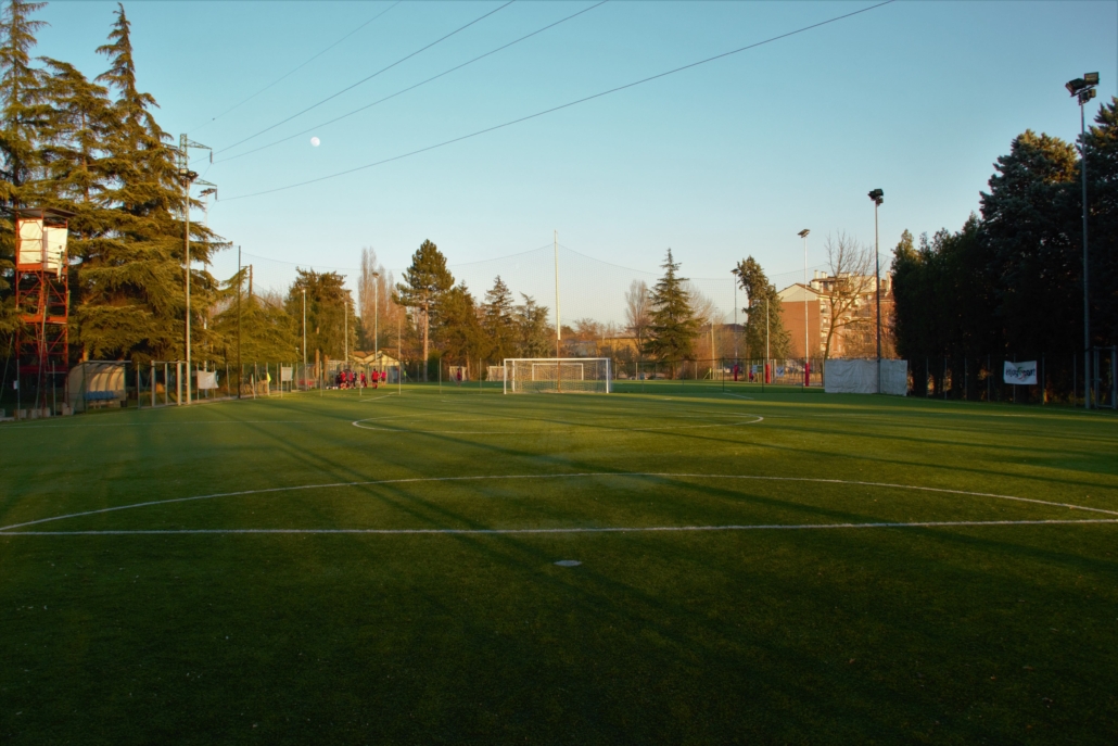 Manto lubrificato ed antiabrasivo, provvisti di tappetino prestazionale e drenaggio. Misure effettive di gioco 40 x 60 mt più le vie di fuga. Strutture illuminate e provviste entrambe di tribuna da 50 posti a sedere con seggiolini, oltre a torretta per riprese video alta 8 mt. Spogliatoi maschili e femminili riservati e prossimi ai campi.